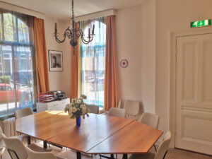 • Overige voorzieningen betreffen een geluidsinstallatie met microfoon, theaterverlichintg, beamer, flap-over, een bescheiden keuken en een bar met koeling.