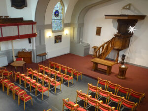 Onze kleine kerk, die wel wat weg heeft van een theatertje, is een sfeervolle plek. Zangers en musici roemen de akoestiek van de kerkzaal. Er zijn 70-100 zitplaatsen en een separate vergadermogelijkheid voor 12 personen. De kerkzaal wordt gebruikt voor lezingen en recepties, concerten, intieme theatervoorstellingen en repetities.
